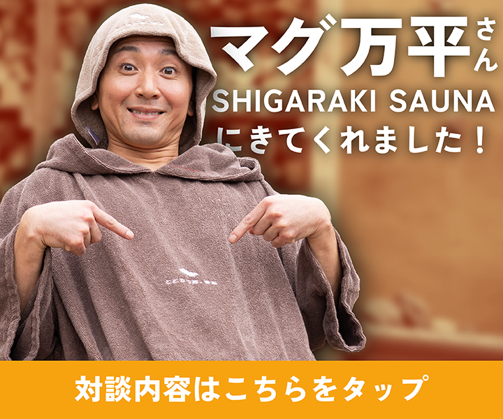 1,200年の歴史を持つ日本最古の茶「朝宮茶」の最高級品を焙煎し作った特別なロウリュウォーターを使用。ロウリュウォーターの開発には、朝宮茶の生産者として名高い「お茶所 蕎麦処 黒田園」が監修。ロウリュをする度に、蒸気と共に立ち上がる豊かな香りが、茶畑にいるかのような爽やかな気分に。信楽の山々を望む開放的な空間で、信楽の自然の恵みと歴史の深さを五感をフルに使って感じることのできるサウナです。